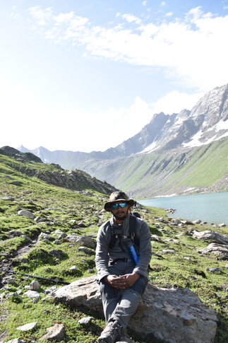 The second part of our story begins now. At Basmai valley, we were already at about 11,800 ft and the Basmai lake(also called Royal Sar Lake in Google) lied at a height of 12,800 ft. We started to walk beyond our camp and follow the stream upwards to find a way to reach the lake. The trail was filled with rocks and stone and there was hardly any trail to follow as such.